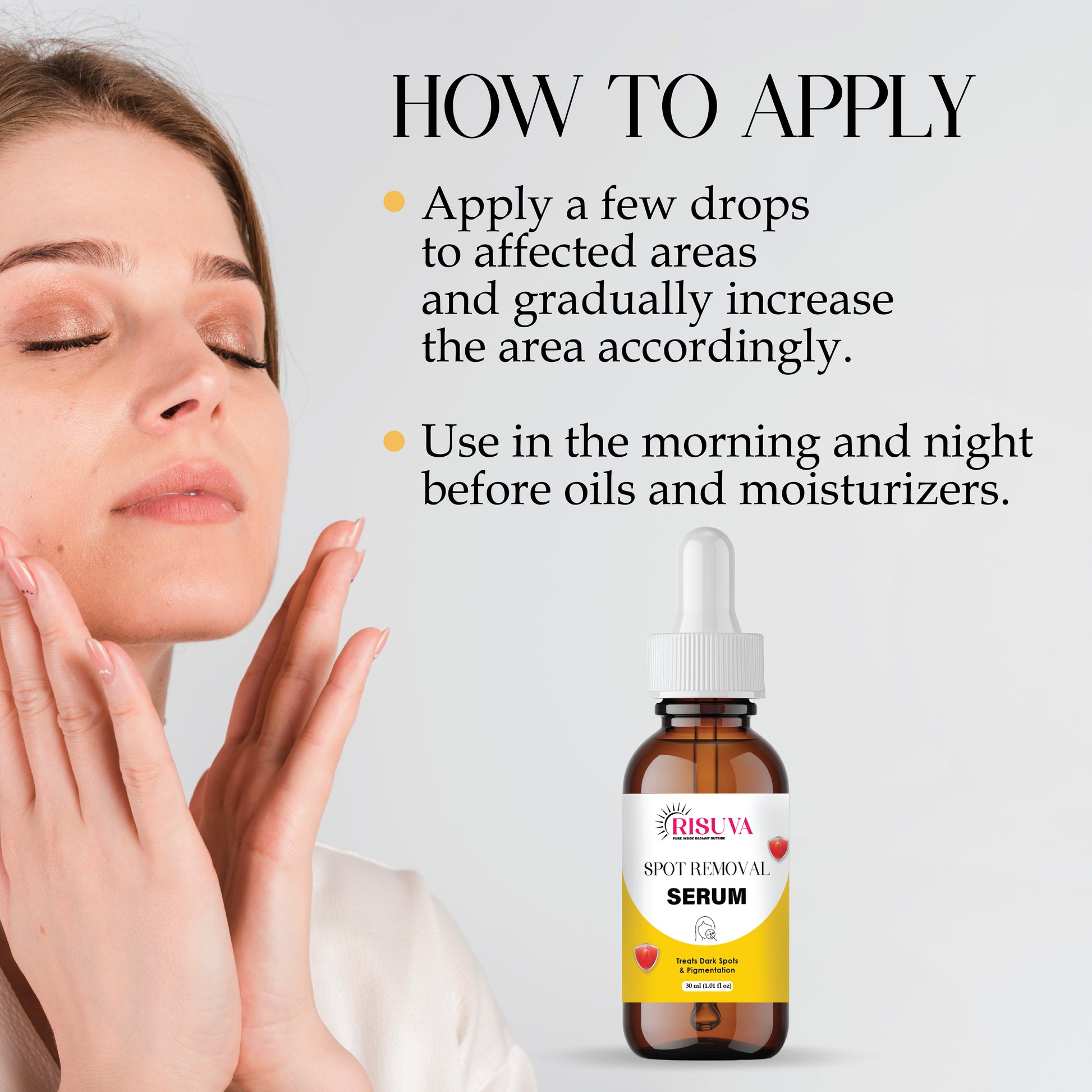 Apply 2-3 drops to cleansed face morning and night. Gently massage in upward circular motions, focusing on areas with spots or discoloration. Follow with your favorite moisturizer and sunscreen during the day.